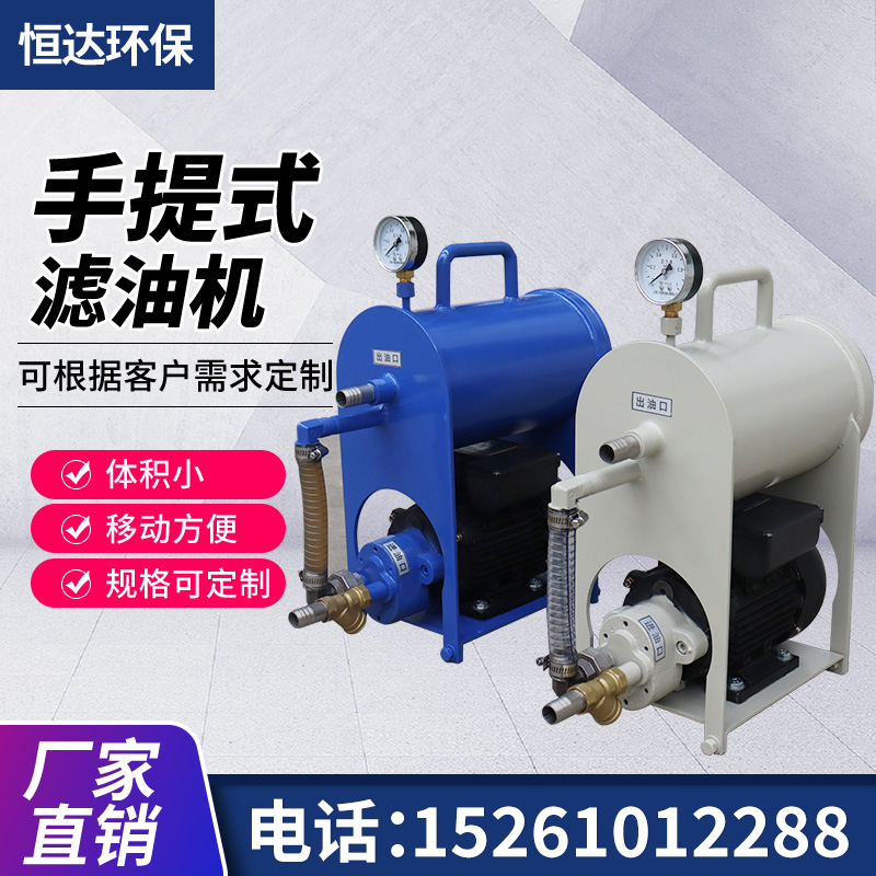 手提式滤油机用于绝缘油、液压油、透平油、压缩机油、润滑油、柴油、煤油等油液加油、注油的设备,特别适用于野外和高空作业,是电力、铁路、建筑、冶金、机械、船舶、航空、化工、实验室等对工业油品的净化过滤处理,延长设备维修周期,降低更换新油成本。