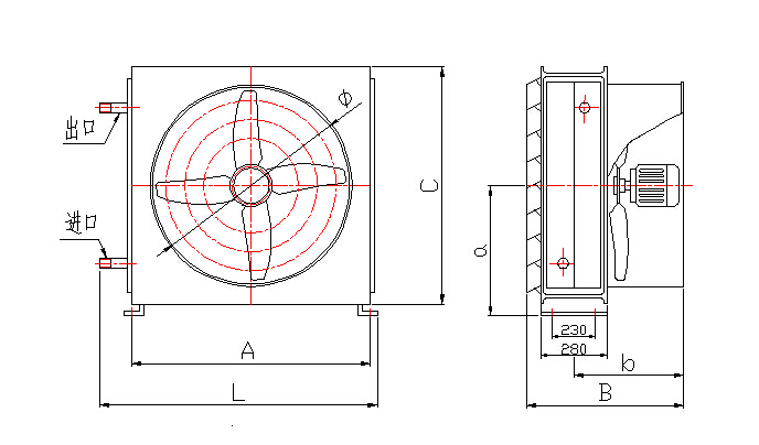 gs型暖风机是以热水为介质,排管采用无缝紫铜管和高度铝箔经胀管组成,采用上进水下出水的接管方式。