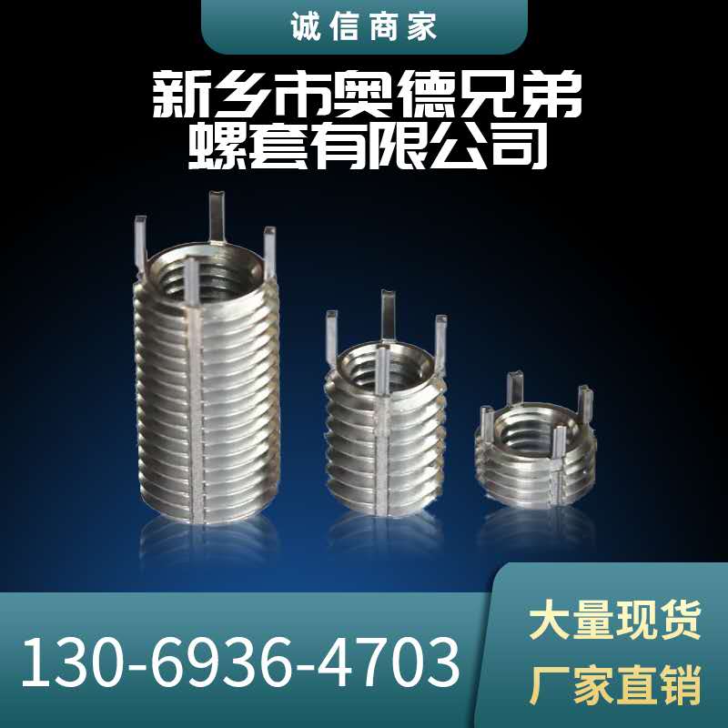 主要生产插销螺套、自攻螺套、一字螺套、薄壁螺套、花齿螺套、螺纹衬套、钢丝螺套、无尾螺套,非标定制螺纹类产品及其辅助安装工具。